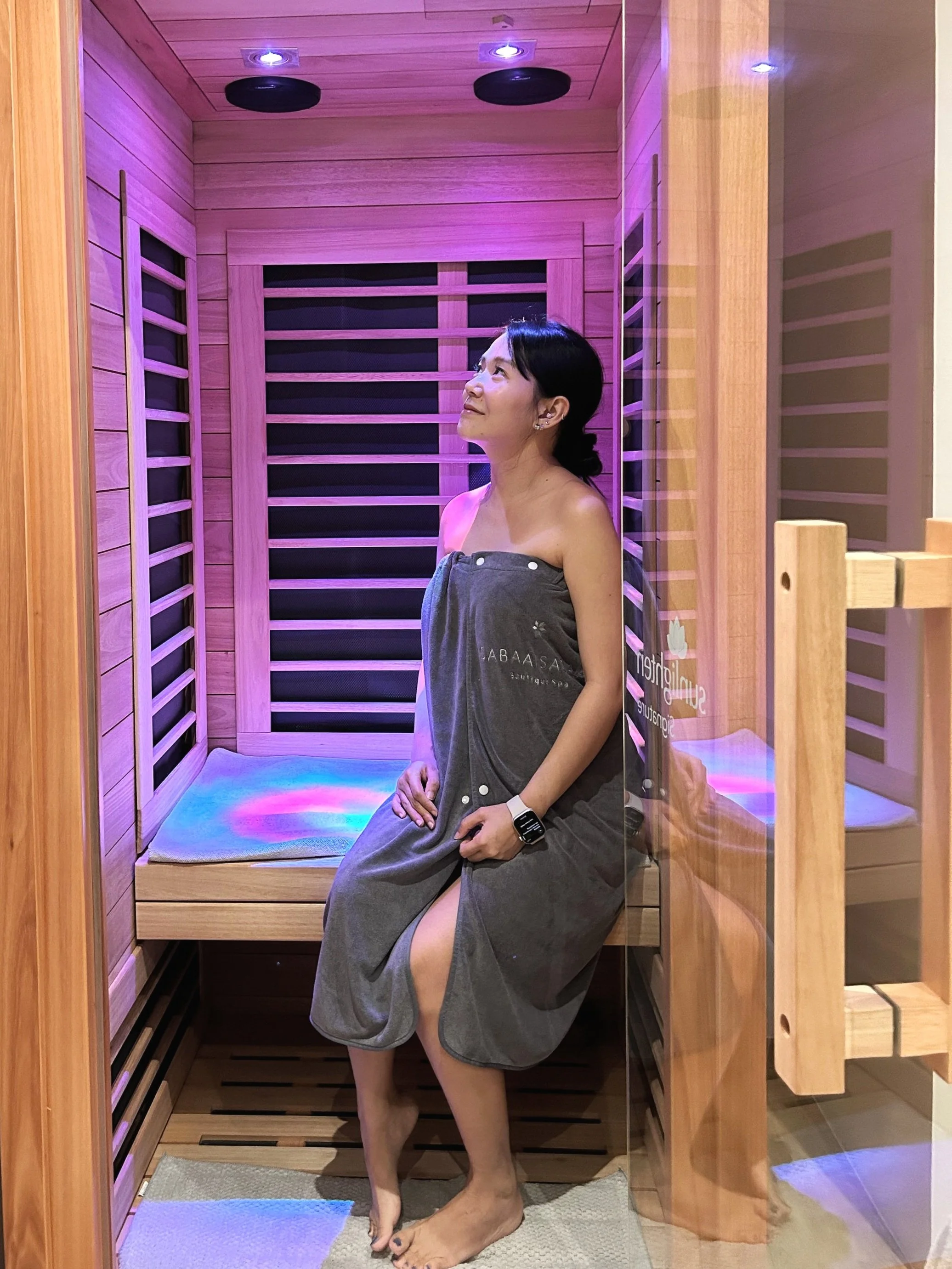Discover the healing benefits of Infrared Sauna Therapy at Sabaai Sabaai. This gentle yet deeply effective treatment uses far-infrared heat to penetrate below the surface of the skin—promoting natural detoxification, easing muscle tension, and supporting full-body recovery.